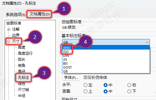 绕行方案:将文档属性 -> 尺寸 -> 孔标注 -> 基本标注标准设定为美制或 ISO。