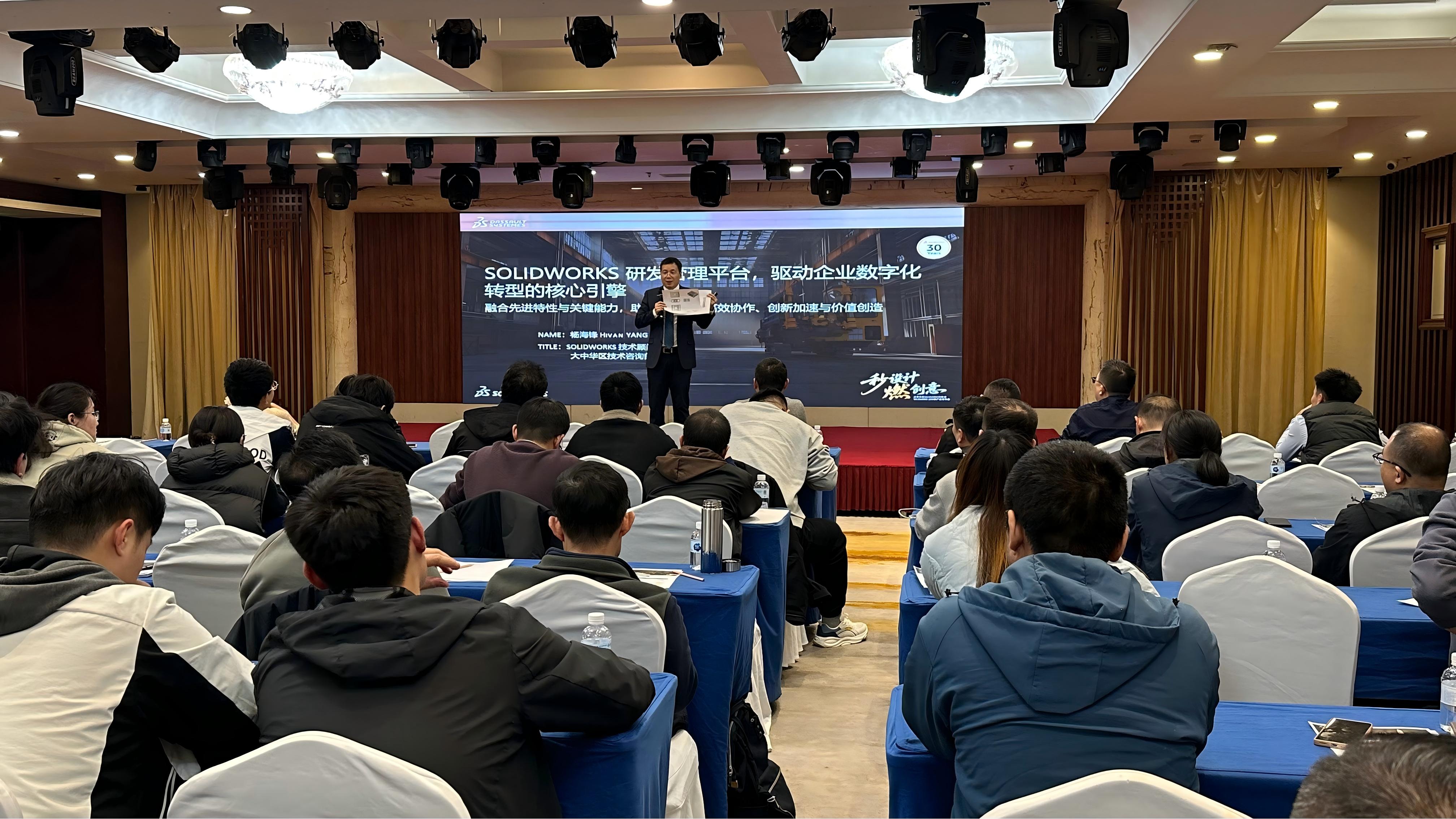 达索系统客户事业部数据业务技术顾问杨海锋先生带来《SOLIDWORKS研发管理平台,驱动企业数字化转型的核心引擎》主题演讲。他结合工业设备企业需求,阐述平台如何通过先进特性与生态集成,推动高效协作与创新加速,并以客户证言验证其对企业数字化转型的核心价值,精彩的案例分享赢得了台下阵阵热烈的掌声。