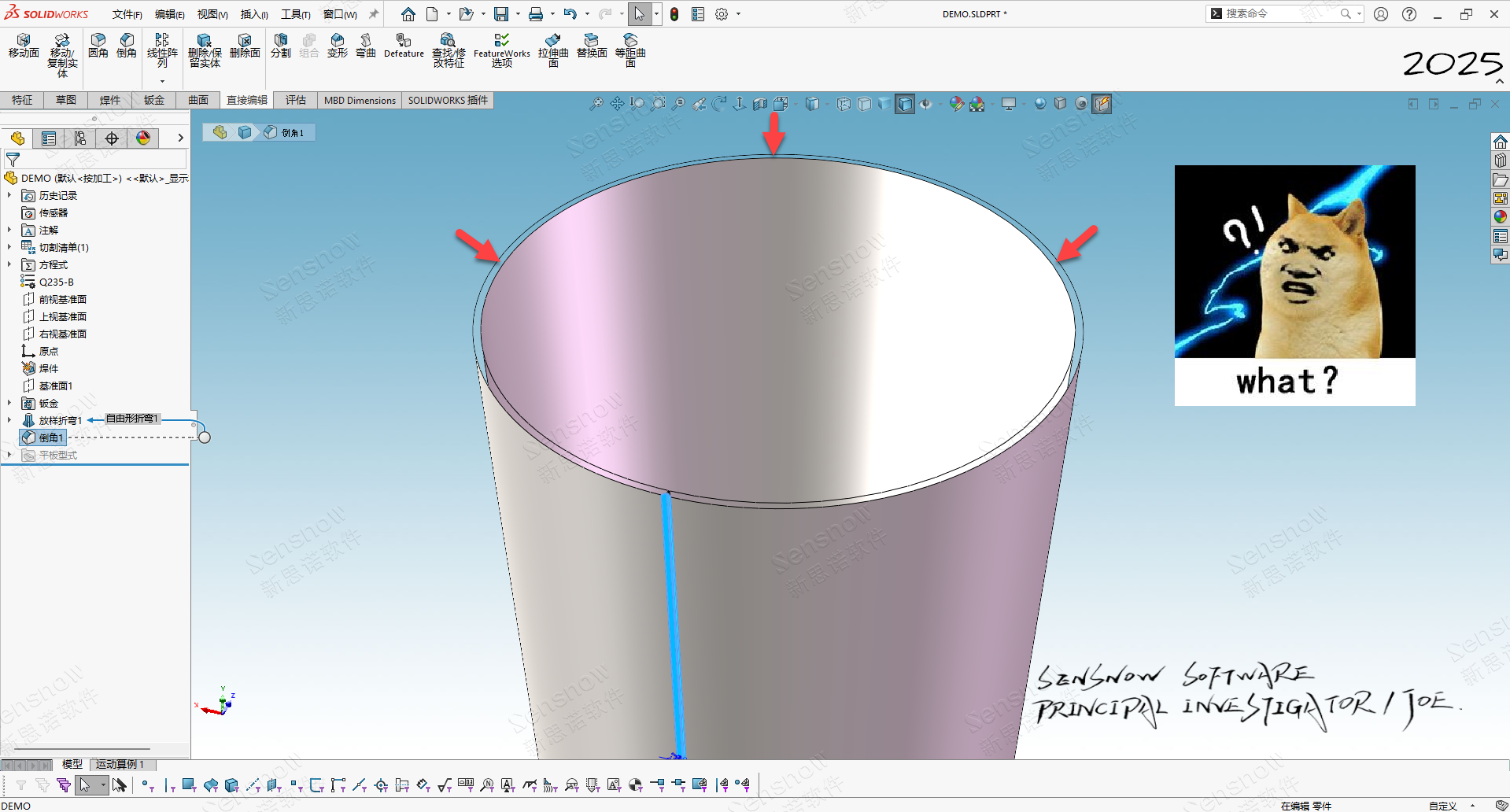 研发部门调查后的结论是一个 Parasolid 内核的功能限制,目前 Parasolid 那边没有修复计划,作为解决方案可以将两端面的“样条曲面”替换为平面。也就是需要将此圆锥钣金的两个卷边面分别替换为平面元素就可以规避这个问题。