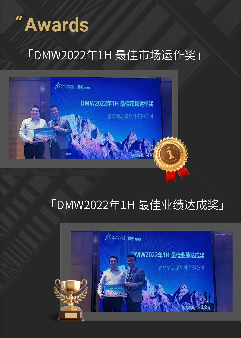 青岛新思诺软件荣获“DMW2022年1H 最佳市场运作奖”和“DMW2022年1H 最佳业绩达成奖”两项荣誉。