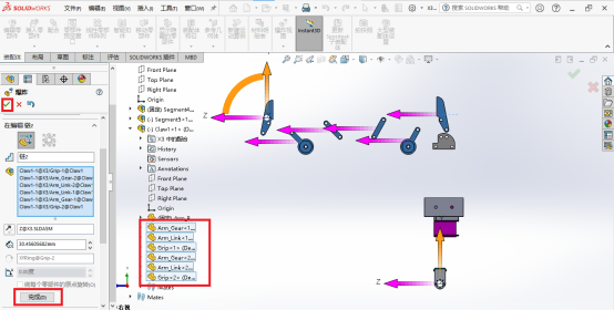 02、如图所示,有三个子装配体。我们选择其中的子装配体,然后鼠标可以点住Y方向上下拖动,也可以点住Z方向左右拖动。
