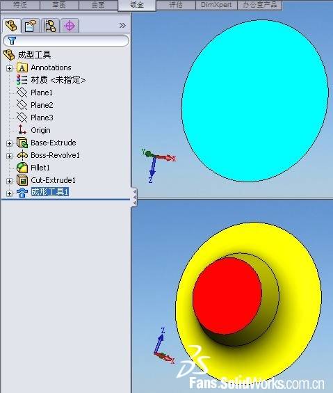 明白了原理,就可以用零件格式(*.sldprt)的文件生成成型工具了,不过,千万要记得,设计库中必须将此文件所在的文件夹设定为成型工具文件夹。新的成型工具使用如下(注意对比图三的成型工具预览框所显示的文件格式):
