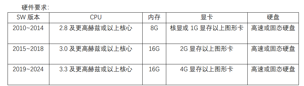 以下是SOLIDWORKS 2024所需的电脑配置建议:
