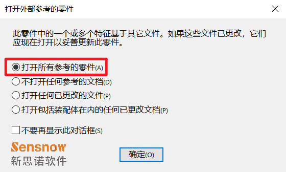 需要注意,替换参考后一定要设定打开外部参考文件的窗口中指定第一项'打开所有参考的零件',这样打开后的参考才会被正常刷新;