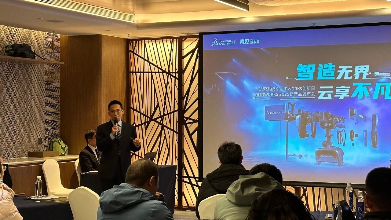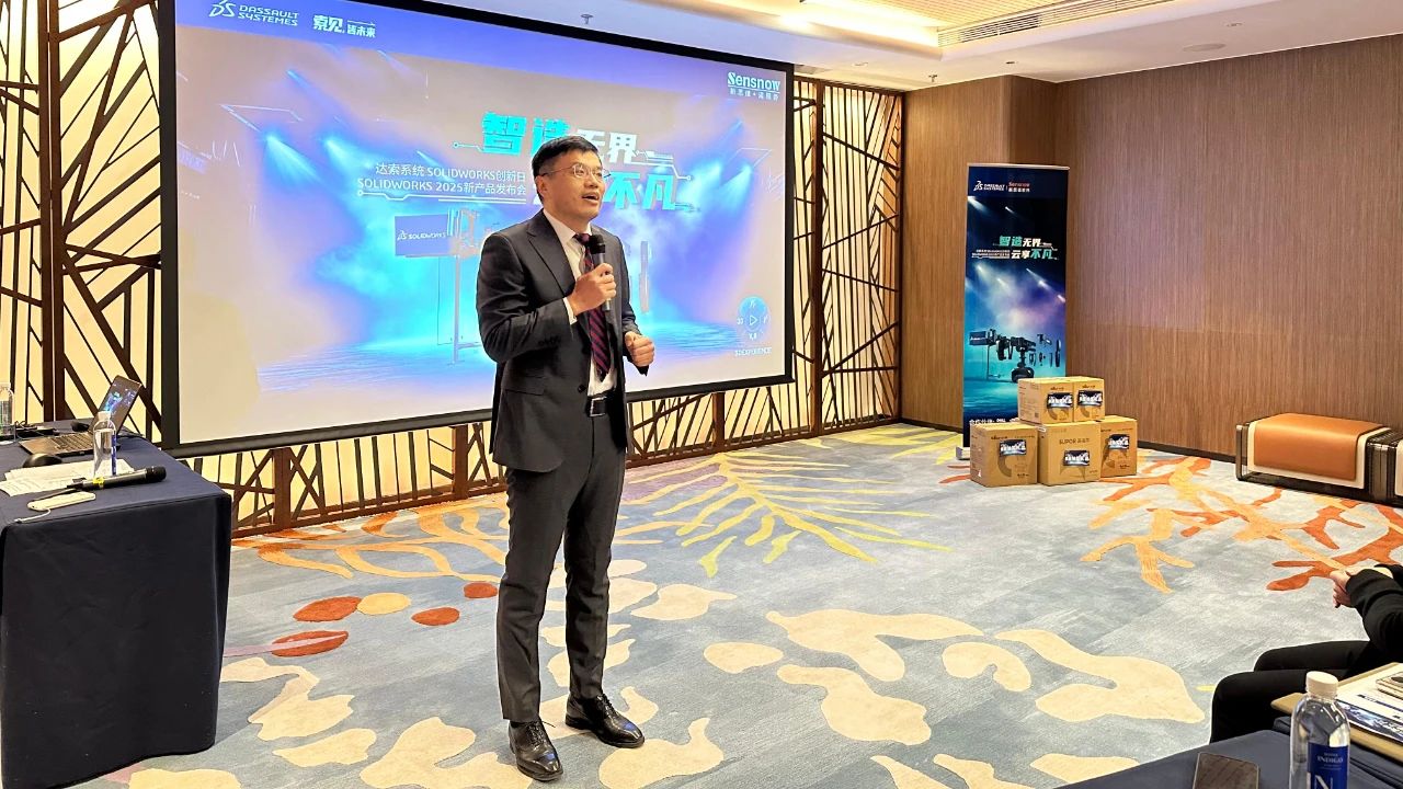 达索系统SOLIDWORKS资深技术经理安锐明先生带来了“智造无界,云享不凡”主题演讲,他深入剖析了当前制造业面临的机遇与挑战,并详细介绍了SOLIDWORKS如何通过创新技术,助力企业打破传统制造界限,实现智能制造与协同创新。他的演讲不仅让与会者领略到了SOLIDWORKS技术的强大魅力,更为大家打开了通往智能制造新世界的大门。