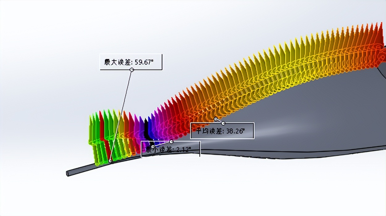通过颜色分布,进行曲面曲率的显示。曲率分析和斑马纹可以一起使用,更直观观察模型面的曲率变化。